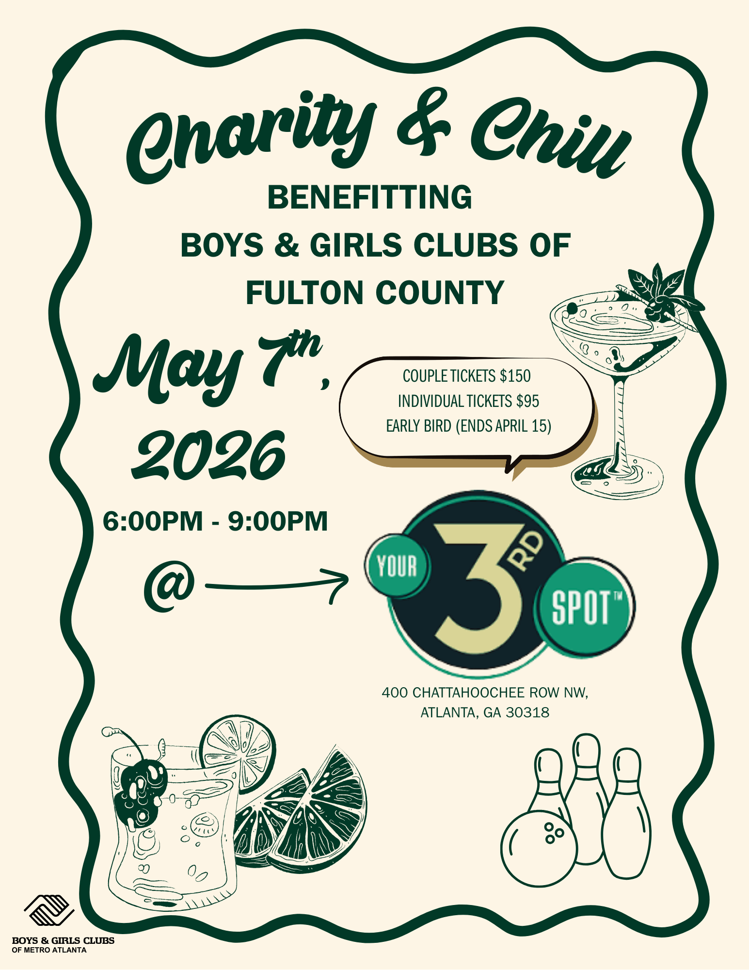 The Boys & Girls Clubs of Metro Atlanta provide critical after-school and youth development programming that empower young people to excel academically, lead with confidence, and build bright futures. Funds raised from Charity & Chill help ensure Clubs remain fully operational, staffed, and equipped to serve our young people year-round.